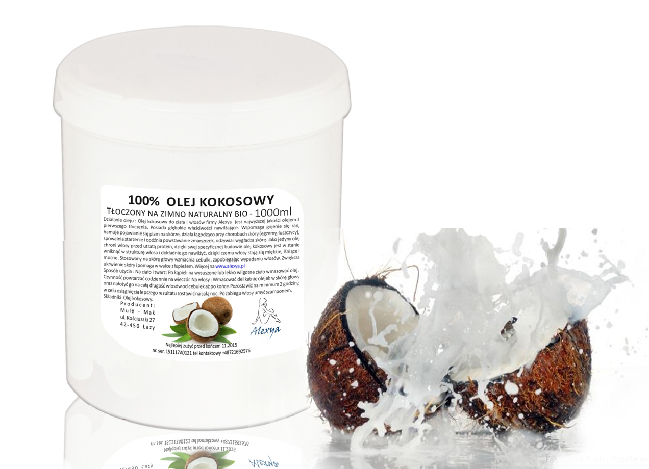Olej kokosowy firmy Alexya jest najwyższej jakości olejem z pierwszego tłoczenia. Posiada głębokie właściwości nawilżające. Wspomaga gojenie się ran, hamuje pojawianie się plam na skórze, działa łagodząco przy chorobach skóry (egzemy, łuszczycy), spowalnia starzenie i opóźnia powstawanie zmarszczek, odżywia i wygładza skórę. Jako jedyny olej chroni włosy przed utratą protein, dzięki swej specyficznej budowie olej kokosowy jest w stanie wniknąć w strukturę włosa i dokładnie go nawilżyć, dzięki czemu włosy stają się miękkie, lśniące i mocne. Stosowany na skórę głowy wzmacnia cebulki, zapobiegając wypadaniu włosów. Zwiększa ukrwienie skóry i pomaga w walce z łupieżem. Sposób użycia : Na ciało i twarz: Po kąpieli na wysuszone lub lekko wilgotne ciało wmasować olej . Czynność powtarzać codziennie na wieczór. Na włosy : Wmasować delikatnie olejek w skórę głowy oraz nałożyć go na całą długość włosów od cebulek aż po końce.Pozostawić na minimum 30 min do 2 godzin, w celu osiągnięcia lepszego rezultatu zostawić na całą noc. Po zabiegu włosy umyć szamponem. Więcej tu …